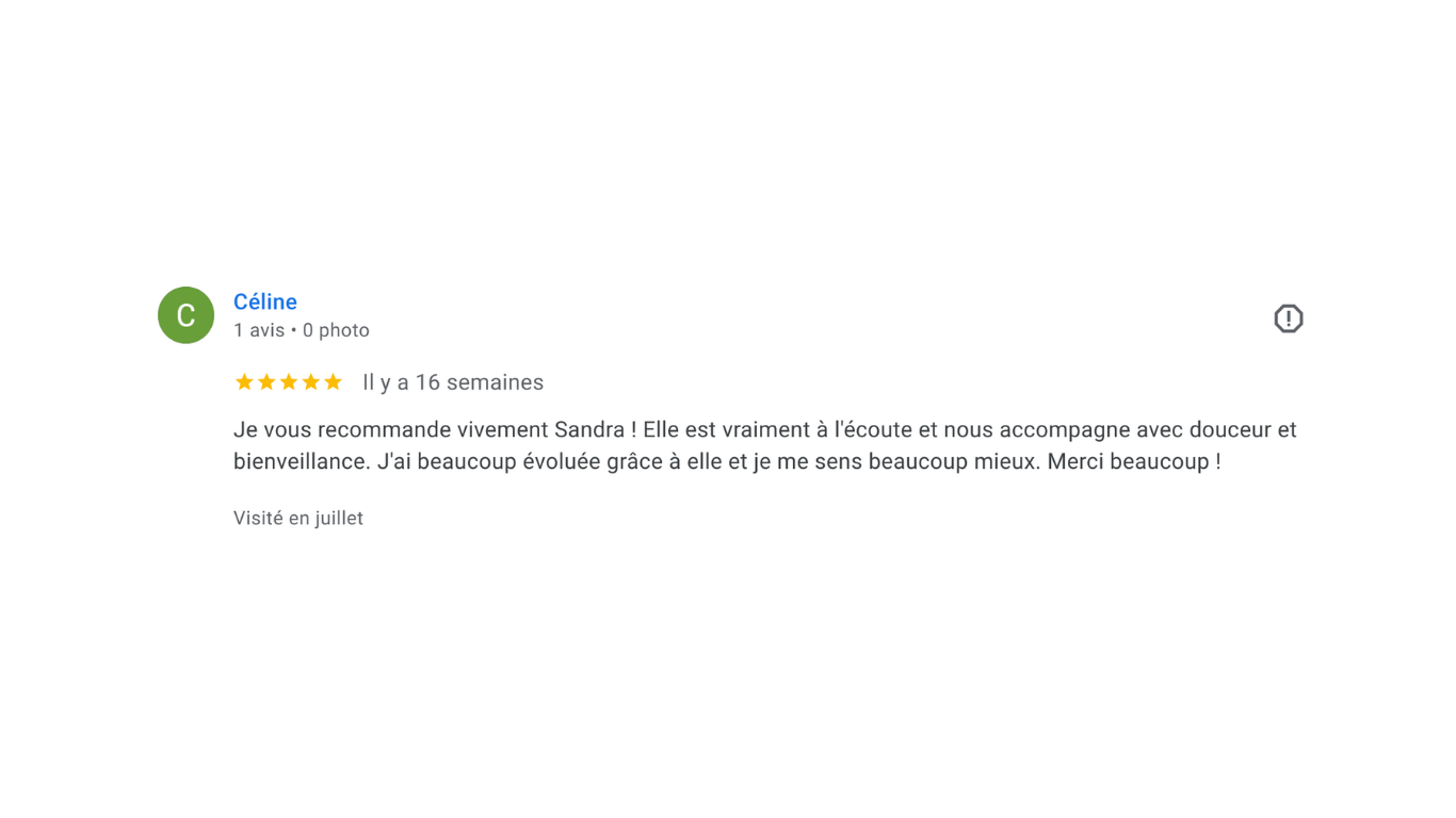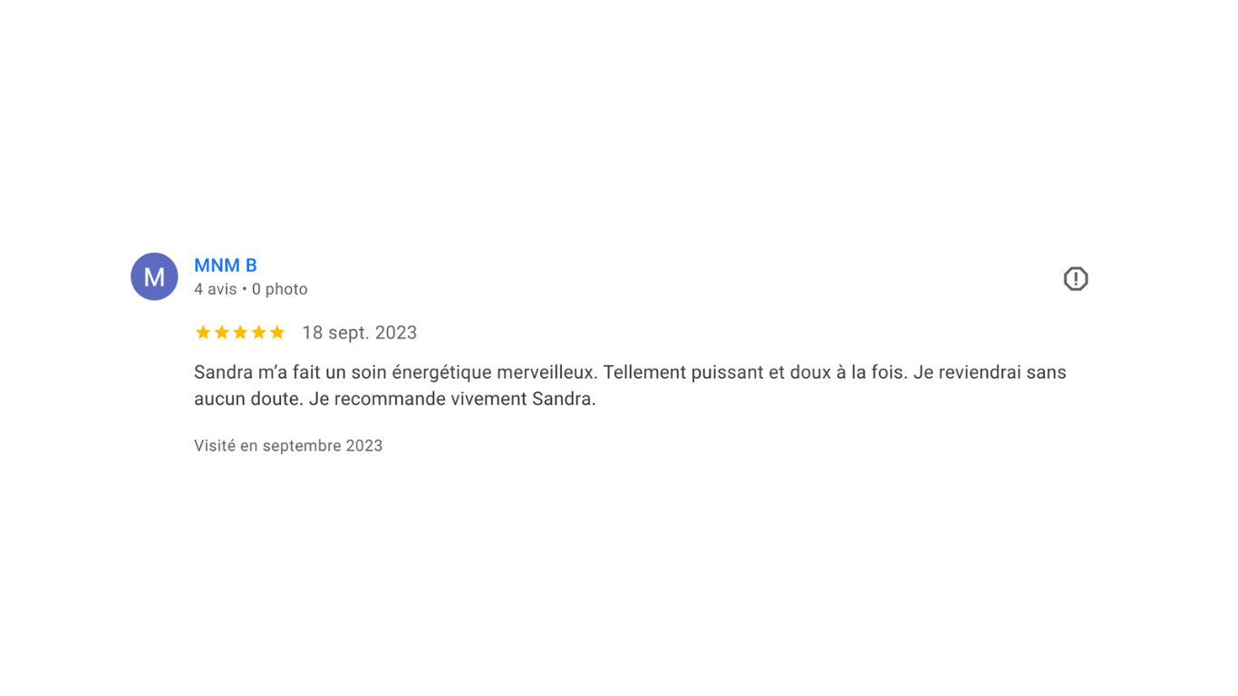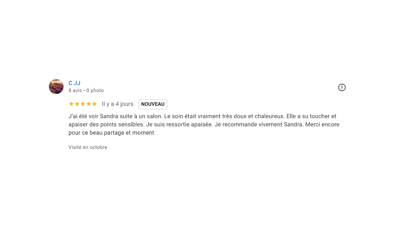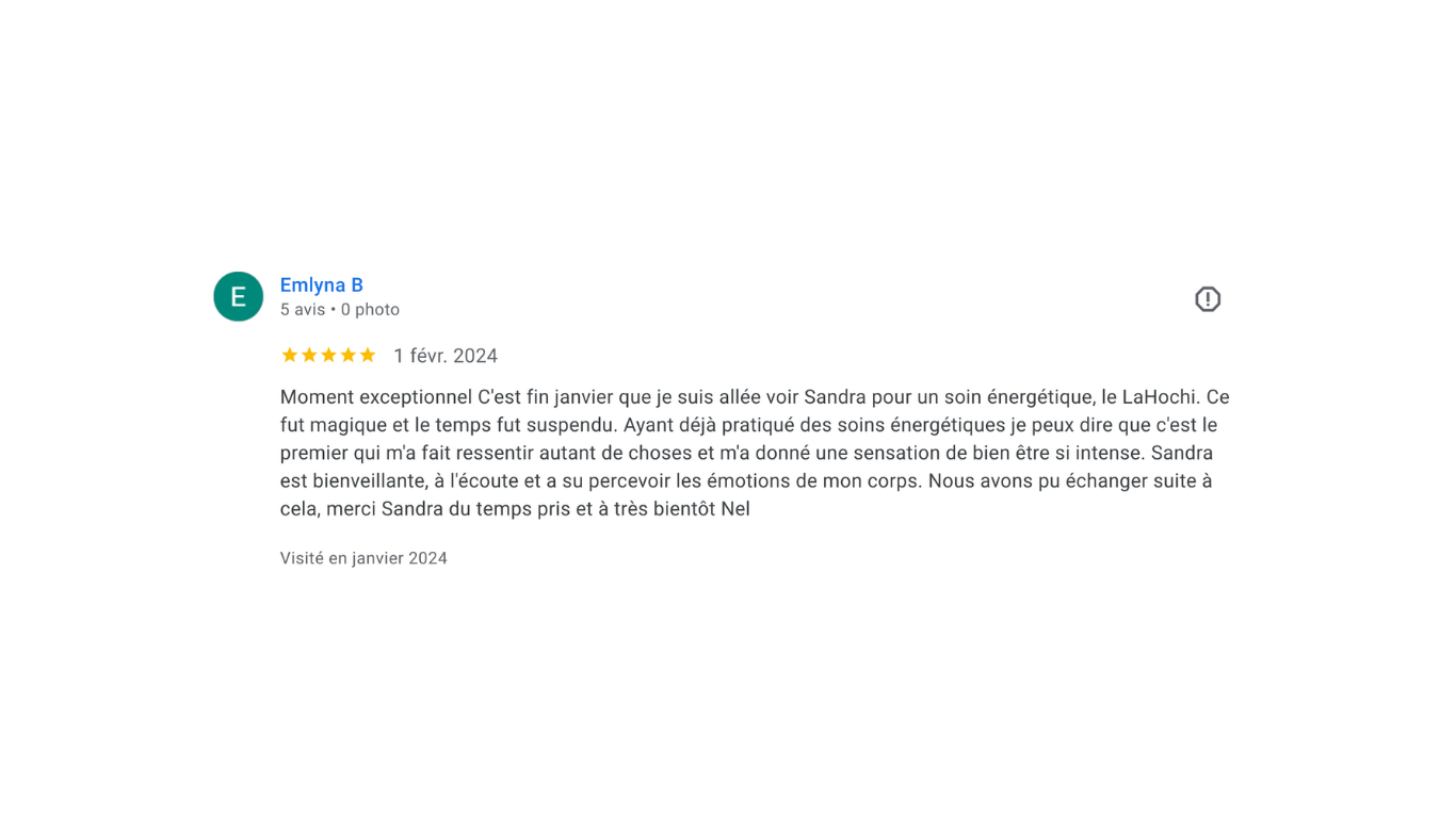 “Sandra m’a aidée à retrouver confiance, énergie et clarté. Chaque séance est un vrai ressourcement.”